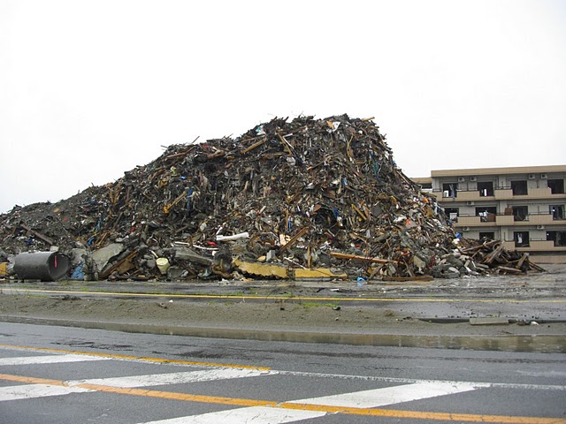 | 未だ大量に残る瓦礫(陸前高田周辺) |